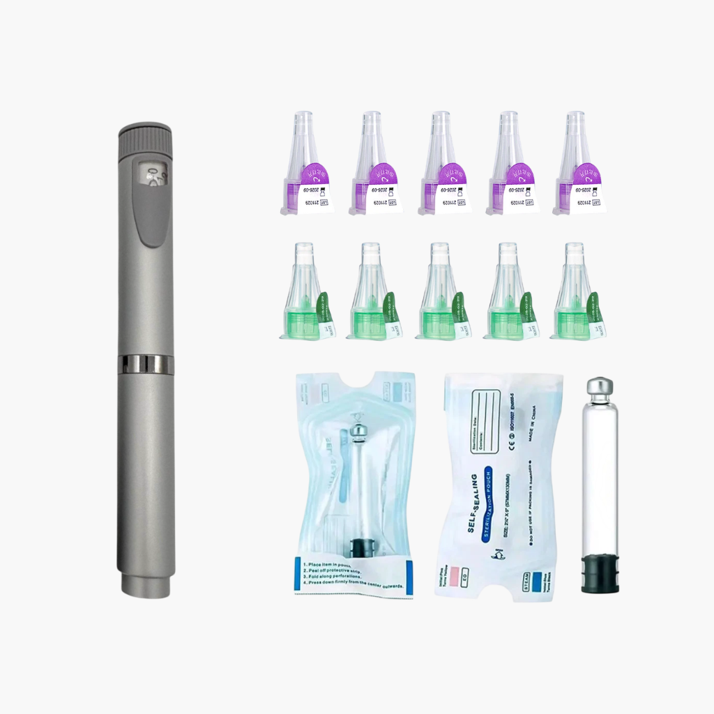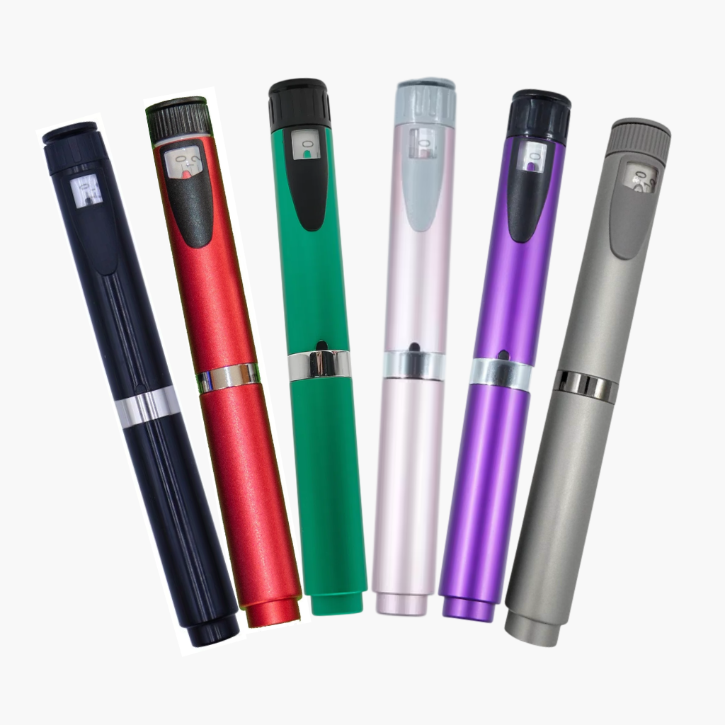 Premium peptide pens designed for accuracy, convenience, and control available in multiple colors with refillable systems.